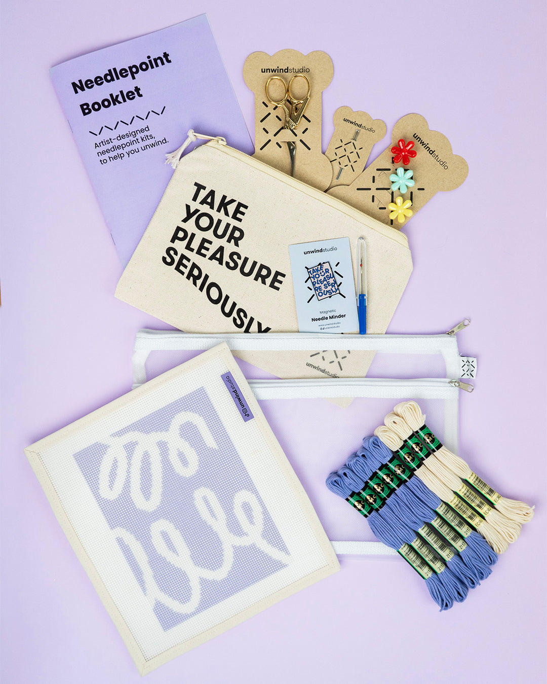 Bundle with EVERYTHING needed to stitch a fun project: super fun needlepoint kit & many accessories