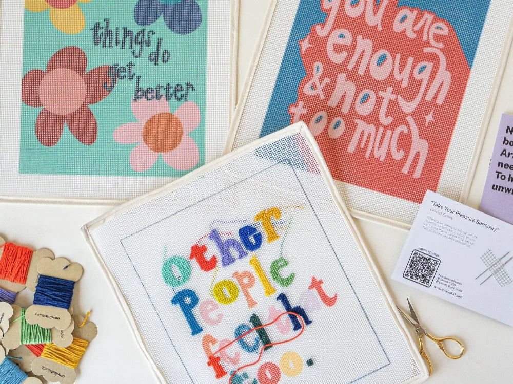 Gobelinstickerei-Set "Nimm dein Vergnügen ernst" (rot)