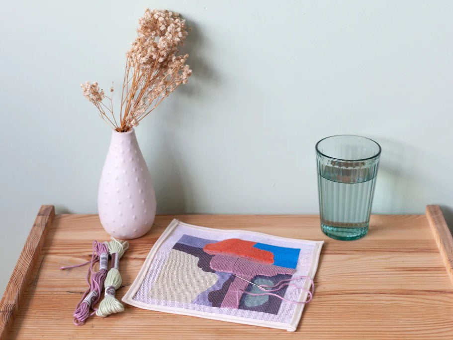 Bei der Option „Nur bedrucktes Stramin“ ist bis auf das Garn und eine einzelne Nadel alles im Lieferumfang enthalten. Das ist die perfekte Option, wenn Sie Ihre eigenen Farbvariationen kreieren oder Garn und Faden wiederverwenden Wollen, das Sie vielleicht schon zu Hause haben!