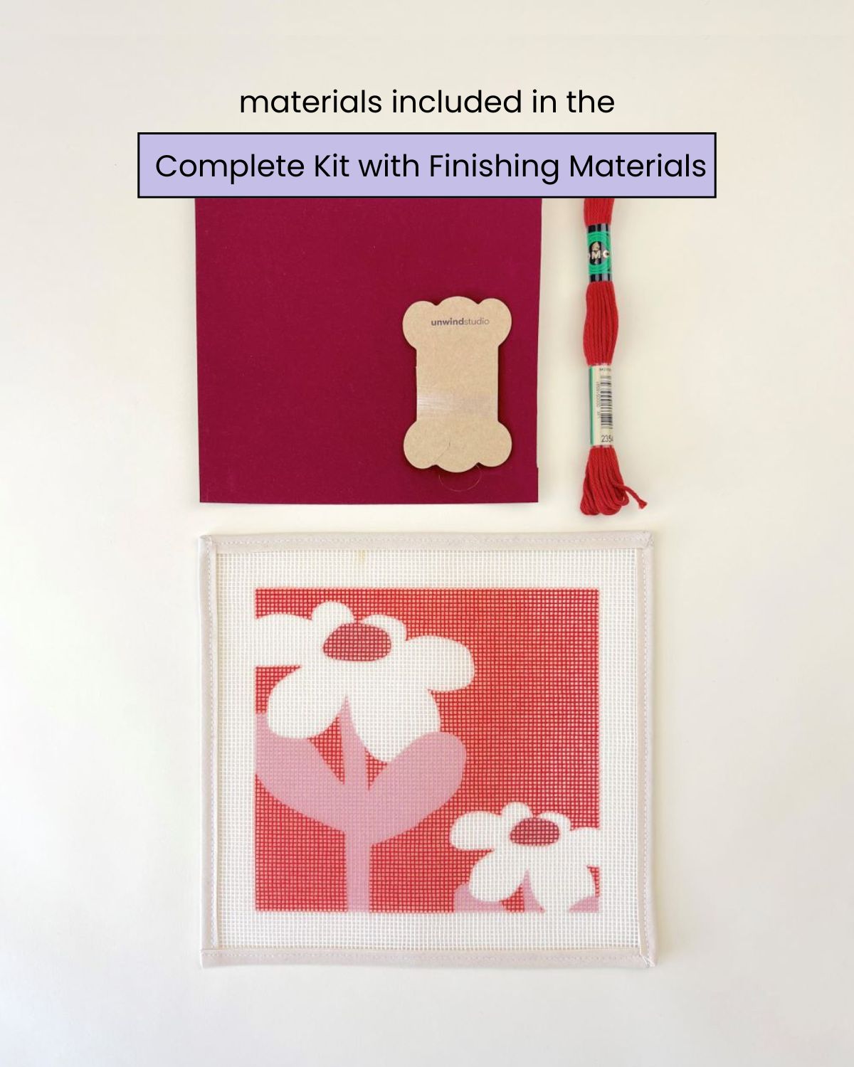 Bei der Option „Nur bedrucktes Stramin“ ist bis auf das Garn und eine einzelne Nadel alles im Lieferumfang enthalten. Das ist die perfekte Option, wenn Sie Ihre eigenen Farbvariationen kreieren oder Garn und Faden wiederverwenden Wollen, das Sie vielleicht schon zu Hause haben!
