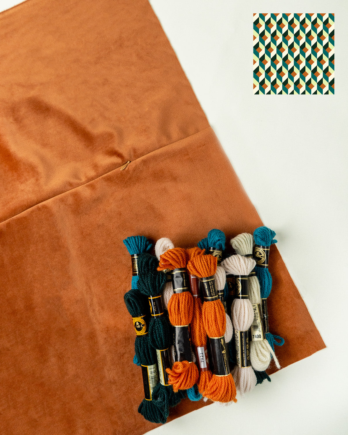 - Threads with enough quantity to stitch with the continental tent stitch (more information in the FAQ's; if you need more thread, leave a note at checkout - we offer you all the thread needed without extra cost!)