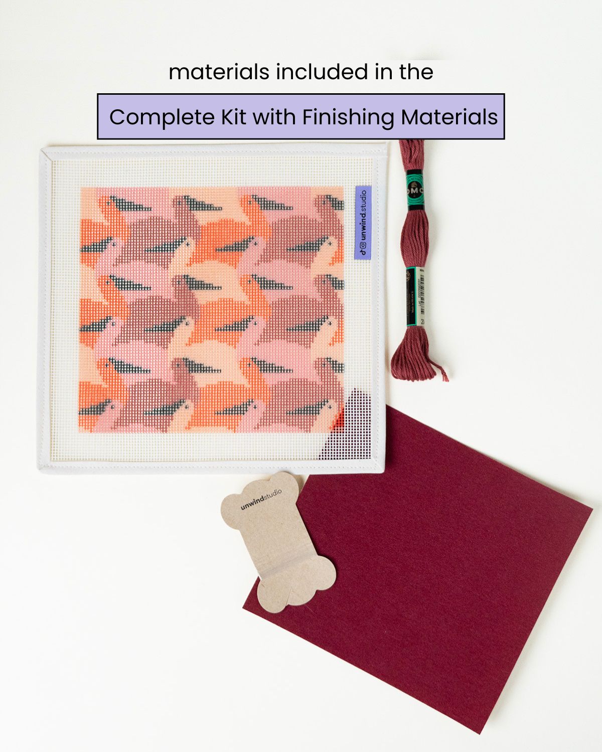 • Threads with enough quantity to stitch with the continental tent stitch (more information in the Product FAQ's; if you need more thread, leave a note at checkout - we offer you all the thread needed without extra cost!)