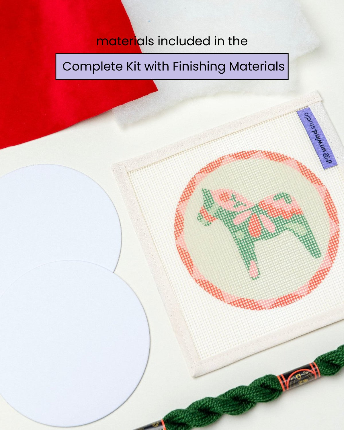 When you buy the “Printed canvas only” option, all the above is included except the threads, and just a single needle. It’s the perfect option if you want to create your own color variation, or re-use threads and yarn you might have at home!