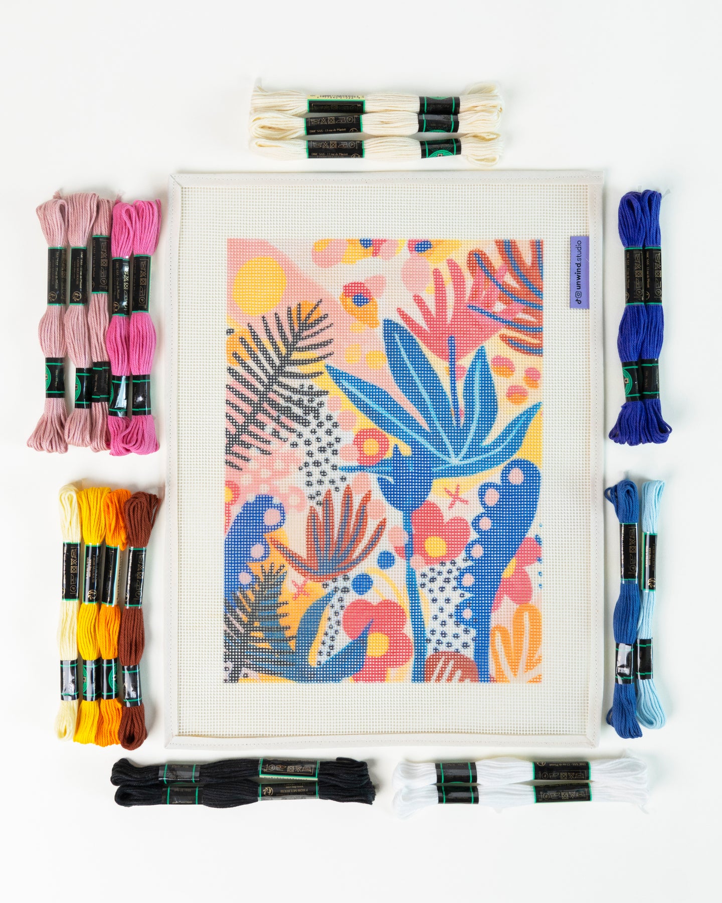 Originally created by Ponnopozz using acrylic gouache, the Camille Needlepoint Kit showcases a captivating blend of neutral colors and gentle brush strokes, resulting in an exquisite and soothing needlepoint project.