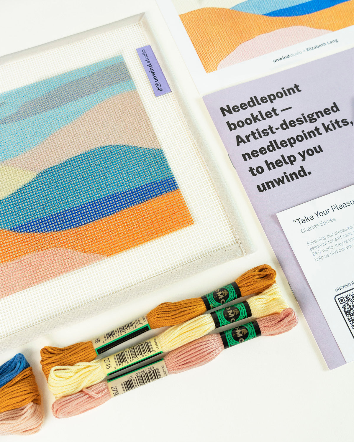 - Threads with enough quantity to stitch with the continental tent stitch (more information in the Product FAQ's; if you need more thread, leave a note at checkout - we offer you all the thread needed without extra cost!)