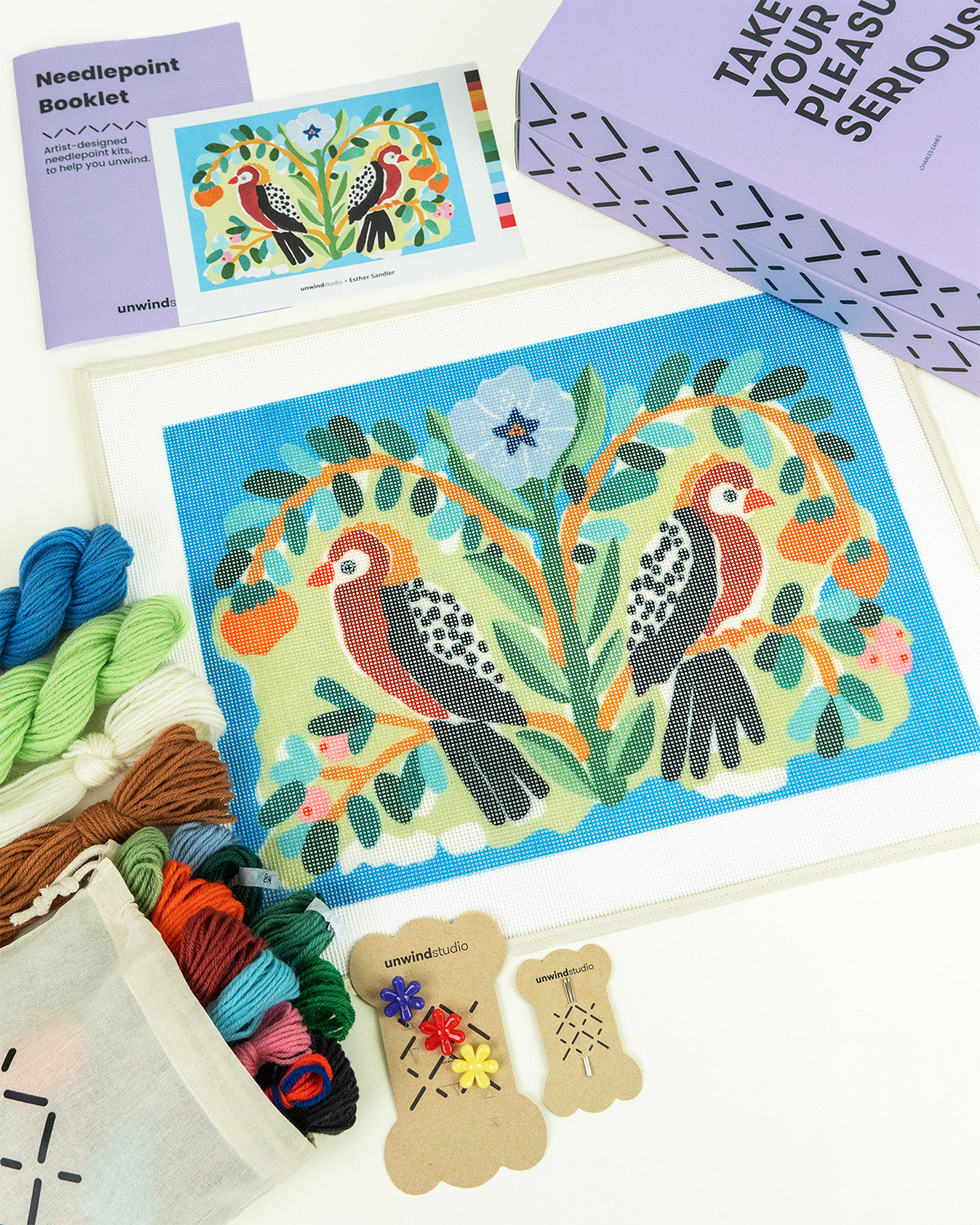 - Tous les éléments du kit complet de tapisserie au demi pointdécrit ci-dessus