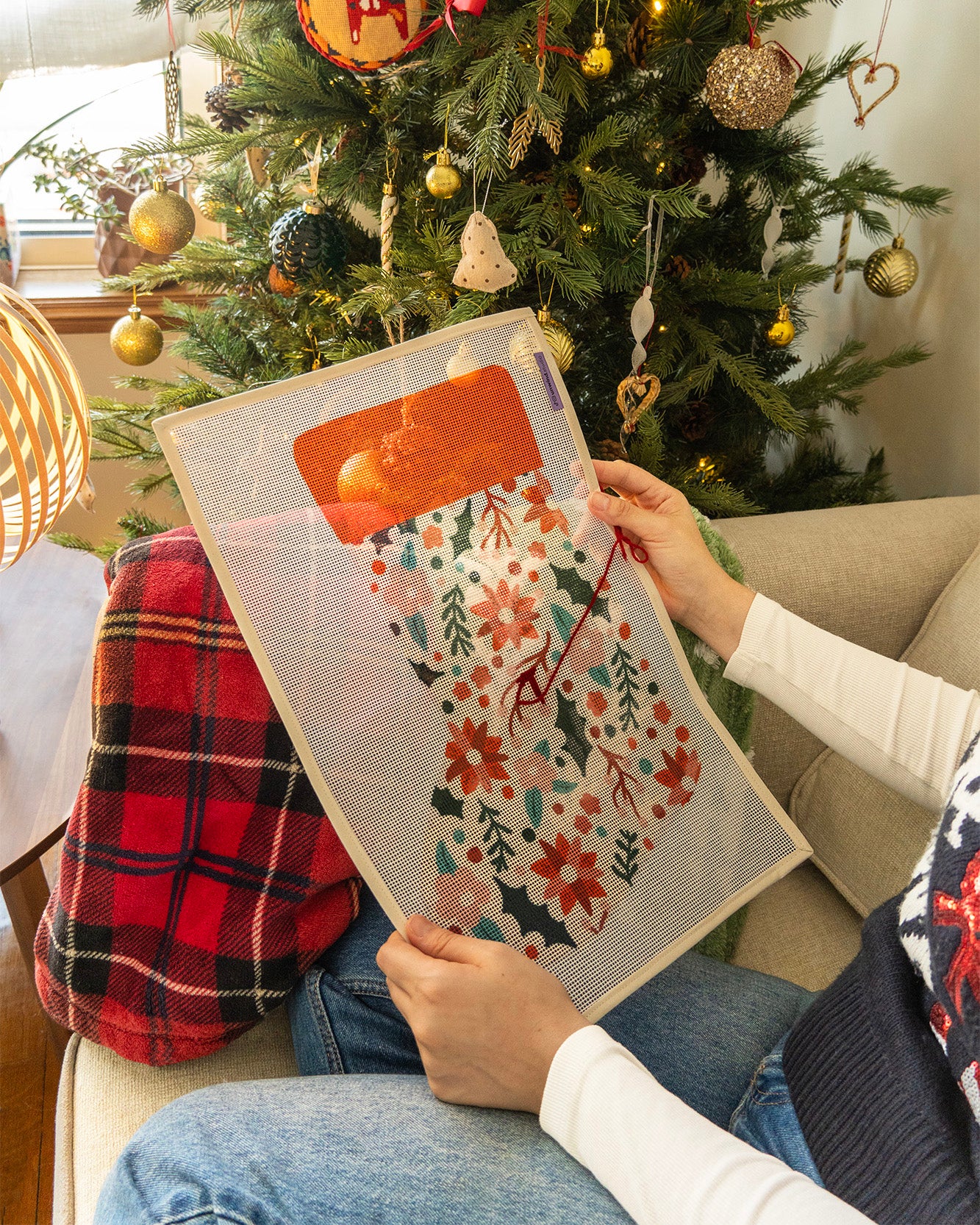 Bring warmth and delicate beauty to your holiday décor with the Aurora in Bloom Stocking Kit. This floral Christmas stocking pairs classic reds, greens, creams, and pinks in a timeless design that’s both festive and modern. Perfect for hanging by the fireplace or gifting as a handmade keepsake, this needlepoint kit includes everything you need to stitch your own holiday tradition.