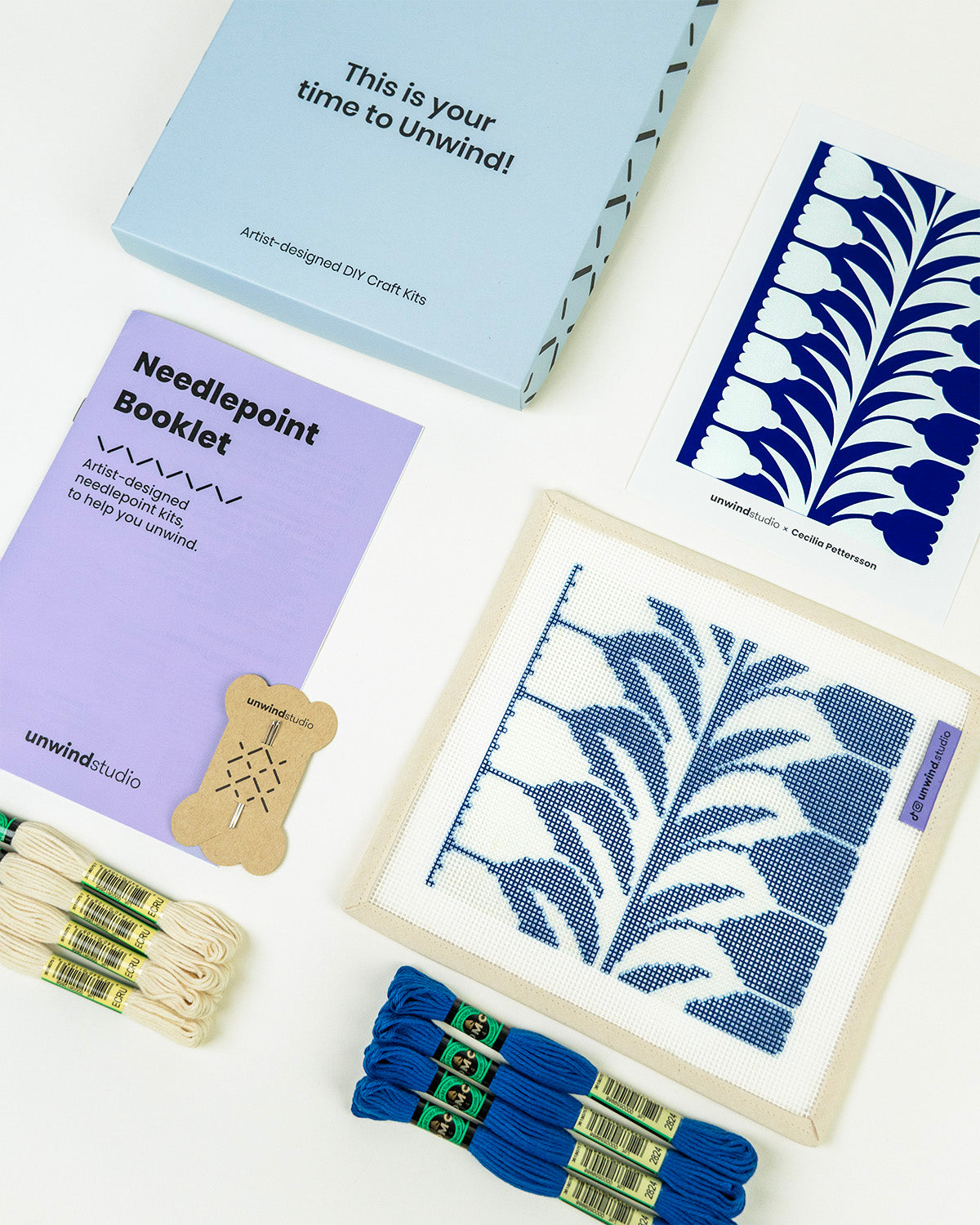 - Threads with enough quantity to stitch with the continental tent stitch (more information in the Product FAQ's; if you need more thread, leave a note at checkout - we offer you all the thread needed without extra cost!)