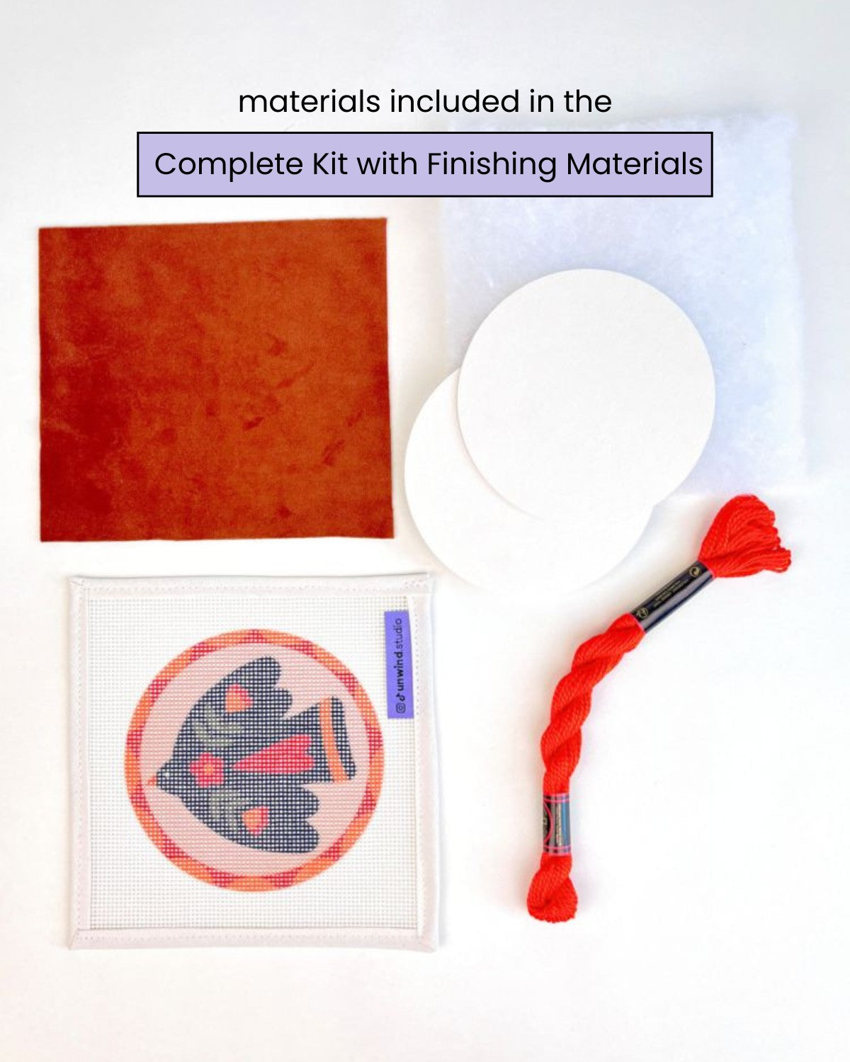 - Threads with enough quantity to stitch with the continental tent stitch (more information in the Product FAQ's; if you need more thread, leave a note at checkout - we offer you all the thread needed without extra cost!)