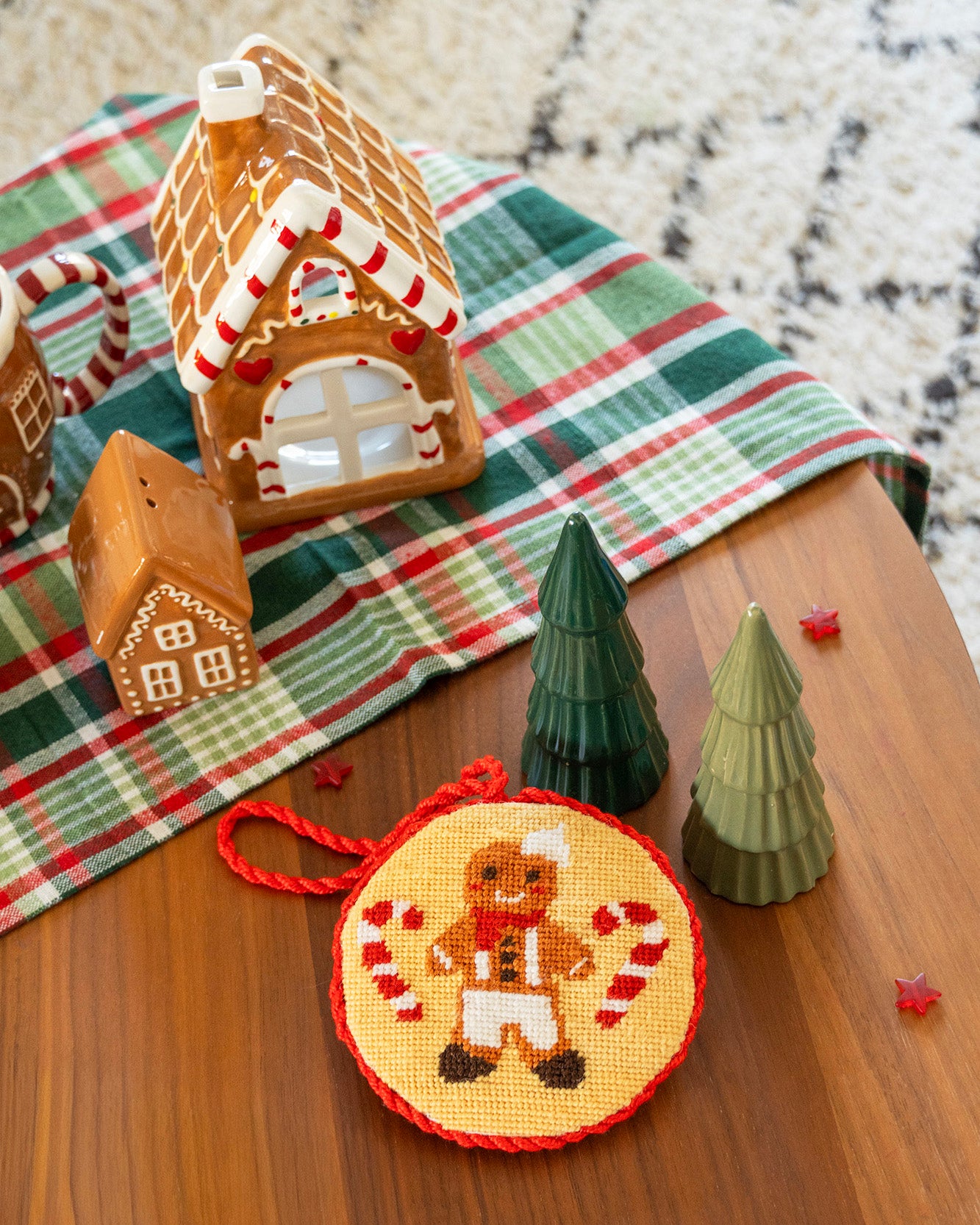 This sweet "Gingerbread Boy" Needlepoint Ornament Kit captures the essence of the holiday season – a time of joy, love, and togetherness. This kit features a tender design that evokes the nostalgic charm of handmade ornaments. With warm reds, whites, and rich browns, this kit allows you to create an ornament that reflects the cozy atmosphere of the holidays.